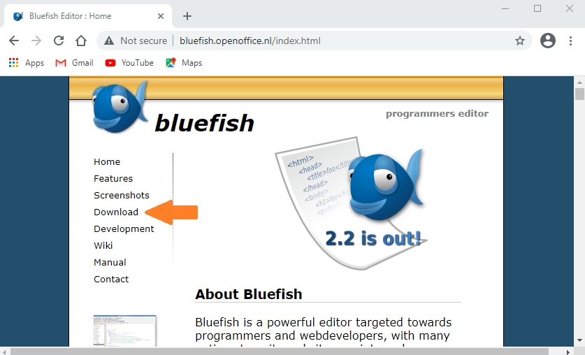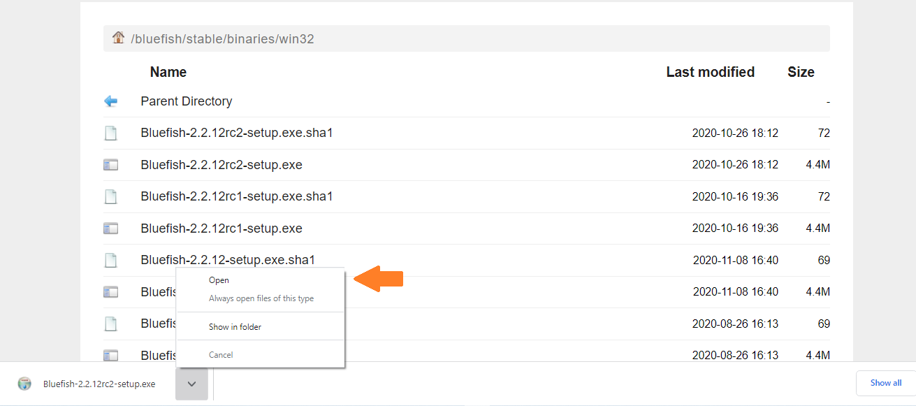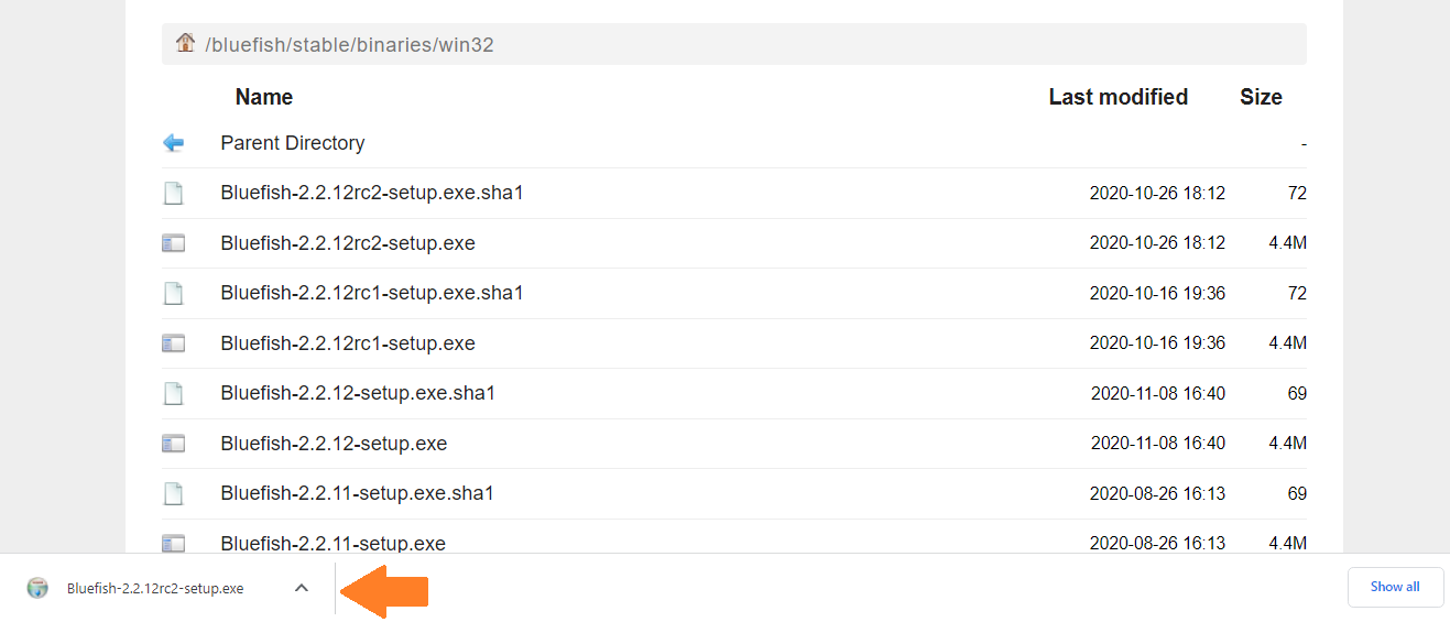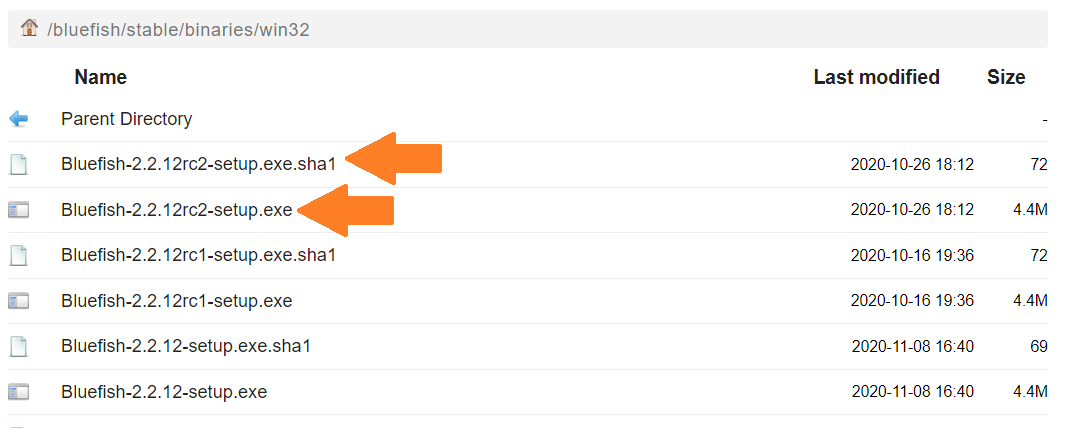 As of 2022-Oct-15, the latest release is Nov 5 - Bluefish 2.2.12 release . Note this you want to make sure to download the latest exe .
